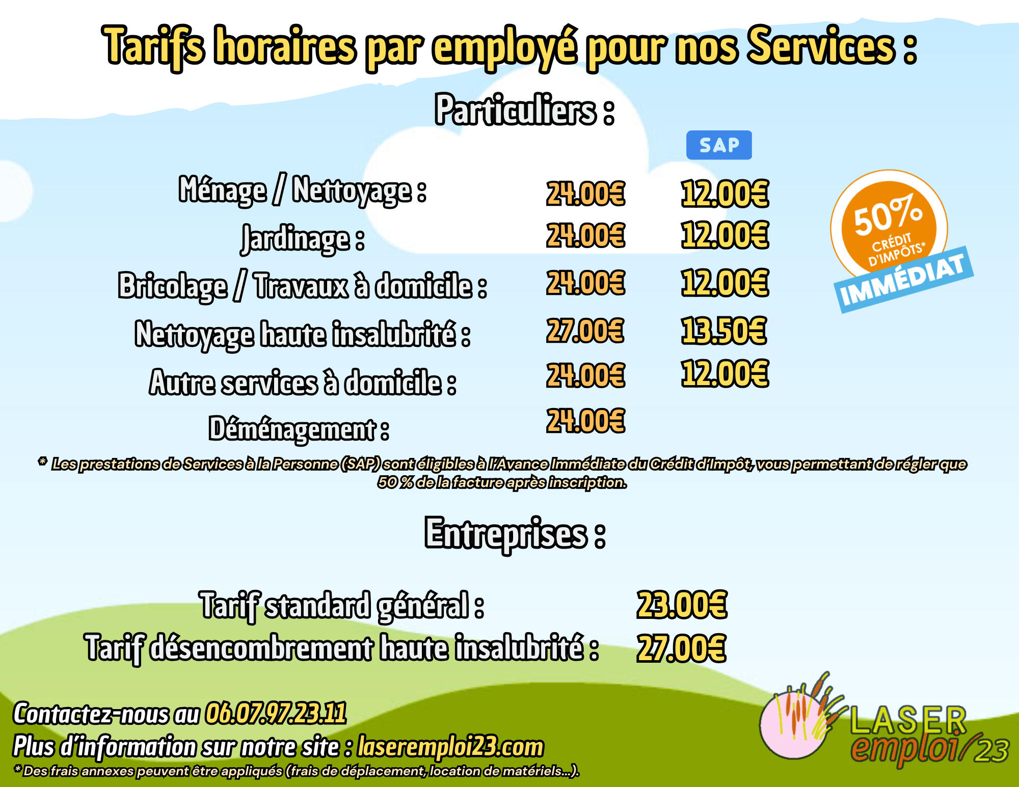 Vous êtes un particulier et vous avez besoin d'une mission de service à la personne ?Payez que 50% sur votre facture Laser Emploi 23 :